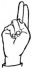 На ћирилици написано КОСТАДИН ВЕЉОГЛАВАЦ састоји се из 18 слова [?]. Исписано ћириличном једноручном азбуком за глувонеме: